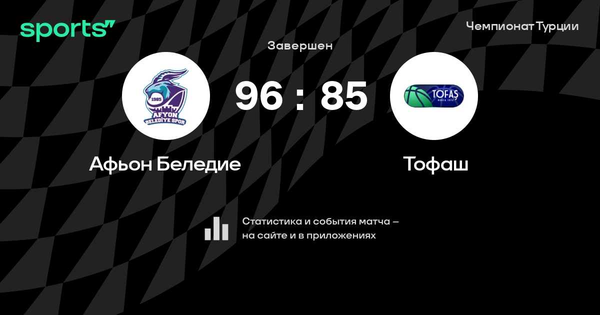В прошедшем матче в рамках турнира Чемпионат Турции состоялась встреча команд Афьон Беледие - Тофаш в городе Afyonkarahisar на стадионе Prof. Dr. Veysel Eroğlu Spor Salonu