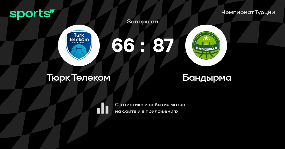 В прошедшем матче в рамках турнира Чемпионат Турции состоялась встреча команд Тюрк Телеком - Бандырма в городе Ulus, Ankara на стадионе Ankara Atat?rk Spor Salonu