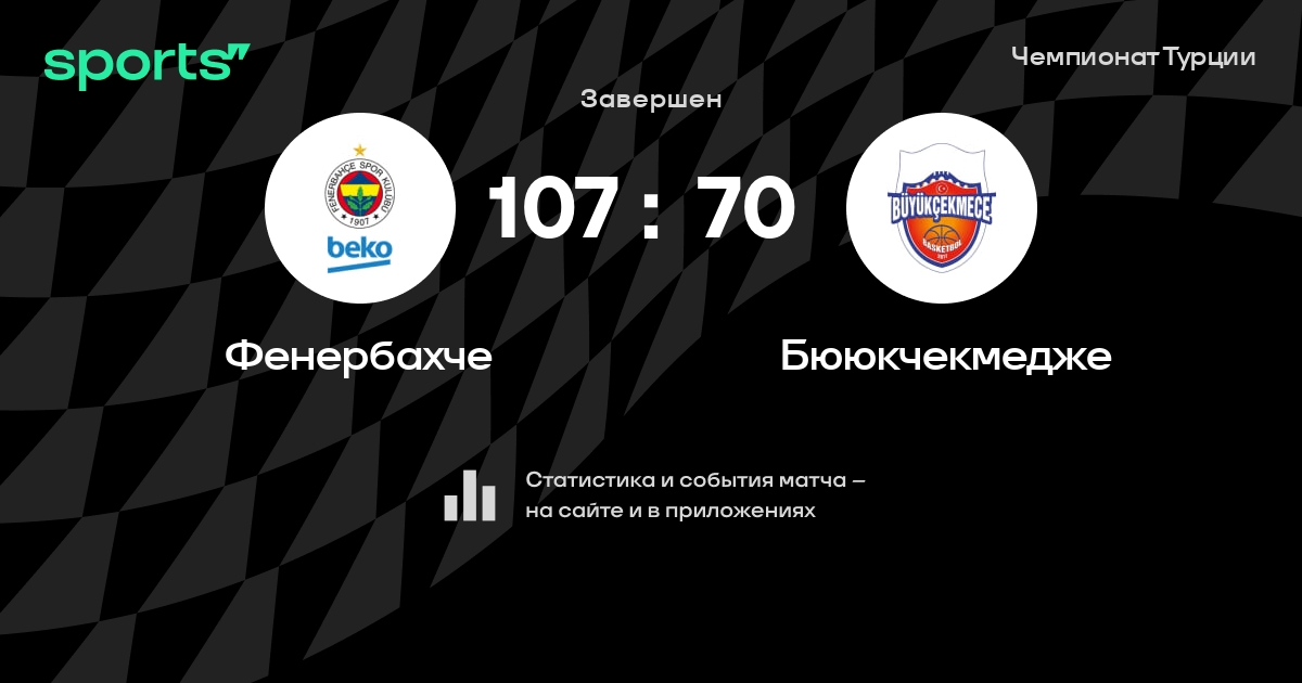 В прошедшем матче в рамках турнира Чемпионат Турции состоялась встреча команд Фенербахче - Бююкчекмедже в городе Стамбул (Турция) на стадионе Улкер Спортс Арена (вместимость - 13000)