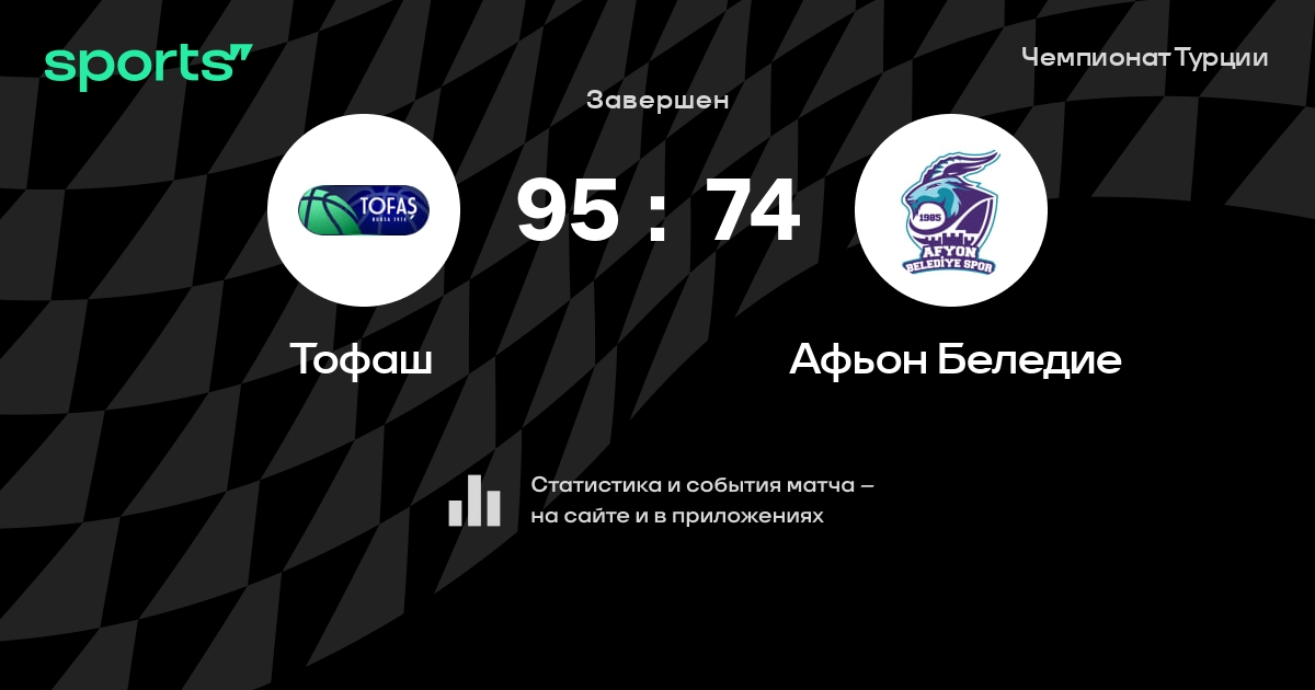 В прошедшем матче в рамках турнира Чемпионат Турции состоялась встреча команд Тофаш - Афьон Беледие в городе на стадионе Tofaş Spor Salonu