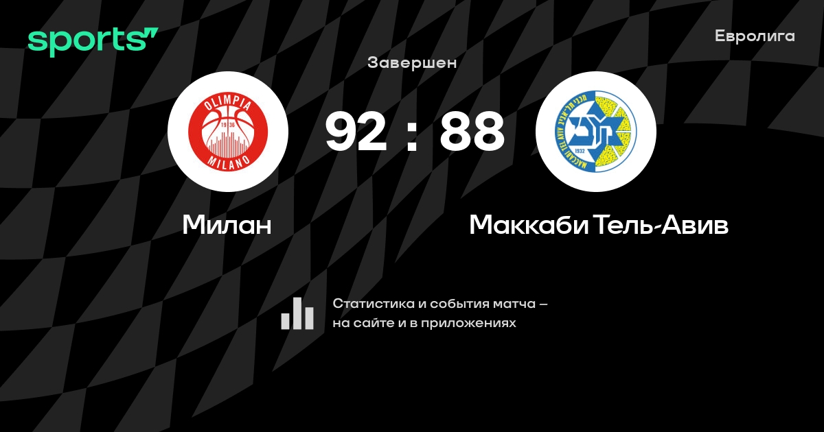 В прошедшем матче в рамках турнира Евролига состоялась встреча команд Милан - Маккаби Тель-Авив в городе Ассаго (Италия) на стадионе Униполь Форум (вместимость - 11200)