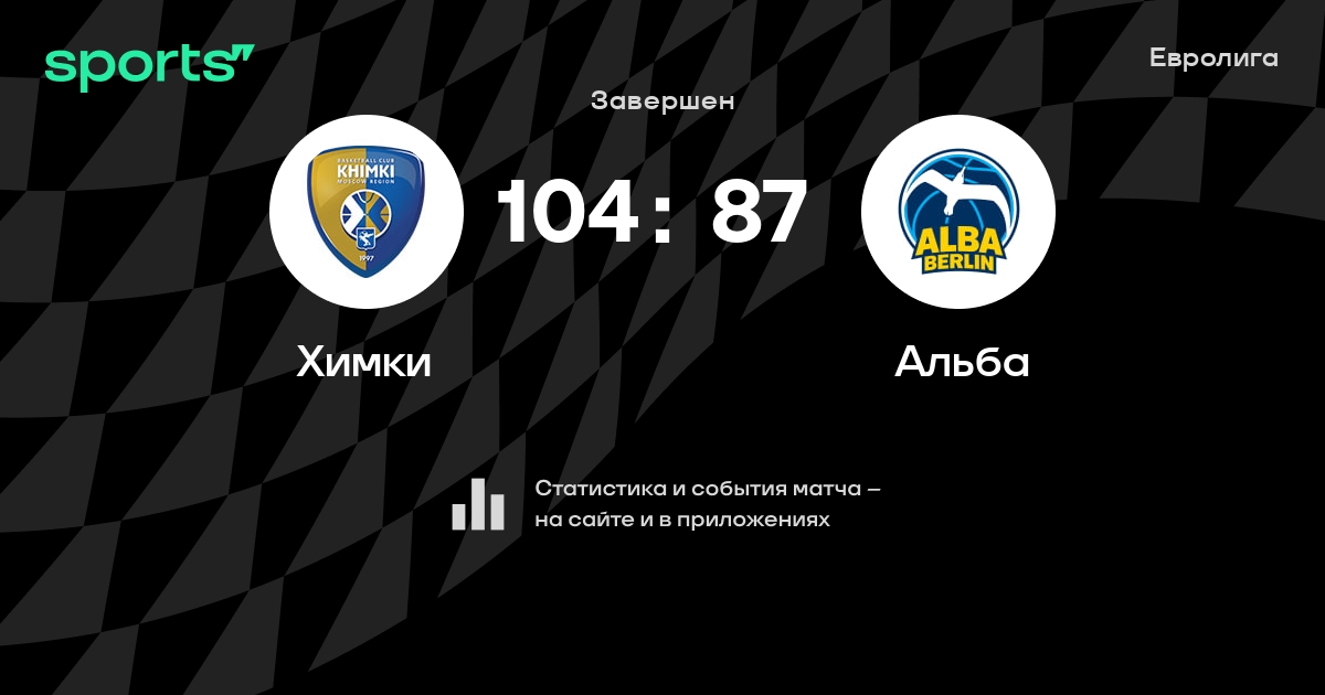 В прошедшем матче в рамках турнира Евролига состоялась встреча команд Химки - Альба в городе Москва (Россия) на стадионе Арена Мытищи (вместимость - 8000)