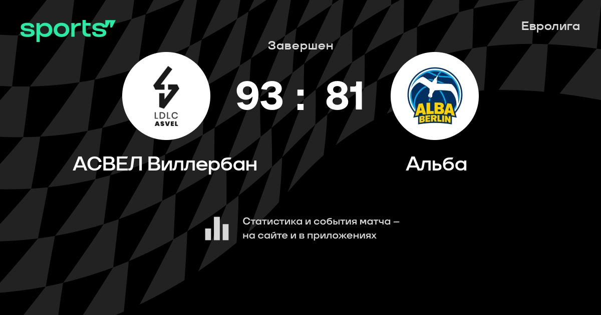 В прошедшем матче в рамках турнира Евролига состоялась встреча команд АСВЕЛ Виллербан - Альба в городе Виллербанн (Франция) на стадионе Астробаль (вместимость - 5556)