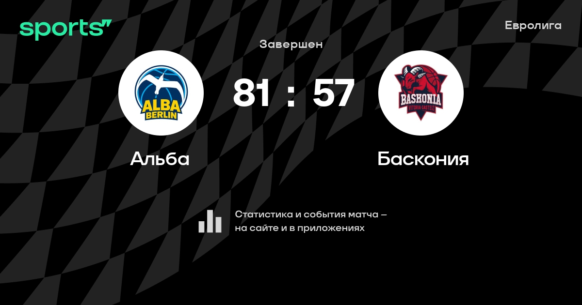 В прошедшем матче в рамках турнира Евролига состоялась встреча команд Альба - Баскония в городе Берлин (Германия) на стадионе Убер Арена (вместимость - 16000)