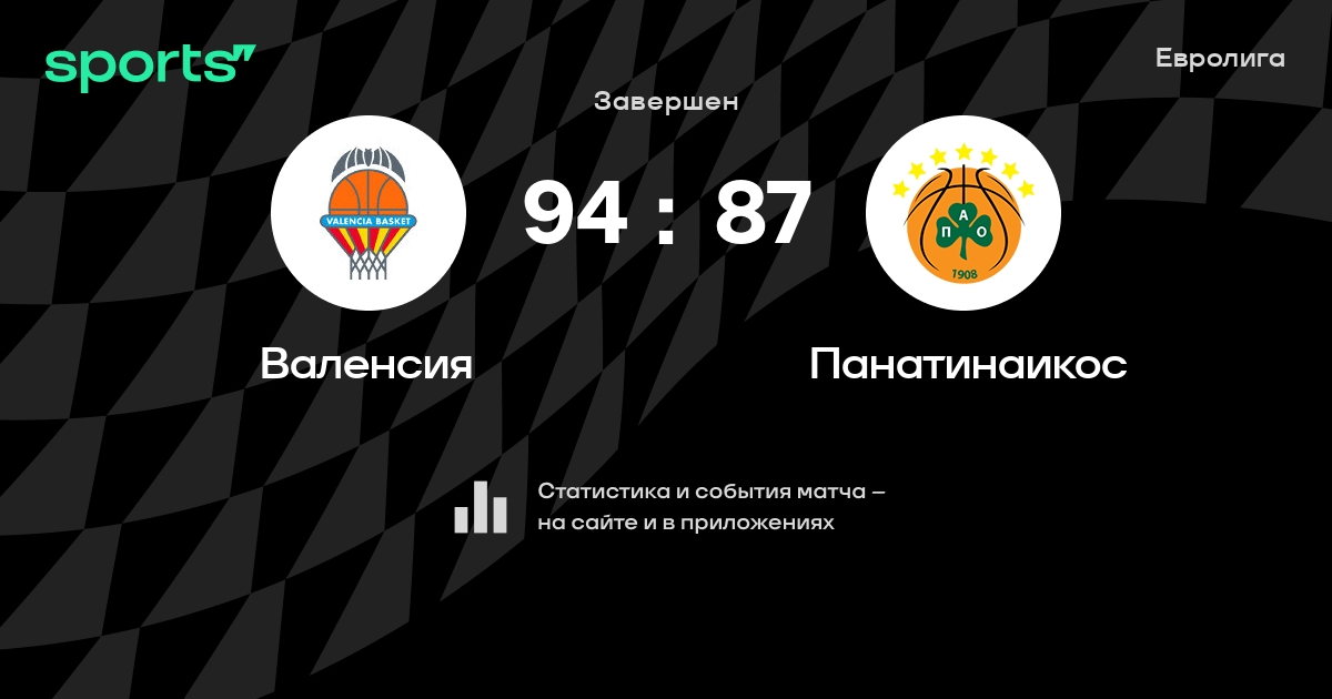 В прошедшем матче в рамках турнира Евролига состоялась встреча команд Валенсия - Панатинаикос в городе Валенсия (Испания) на стадионе Ла Фонтета (вместимость - 9000)