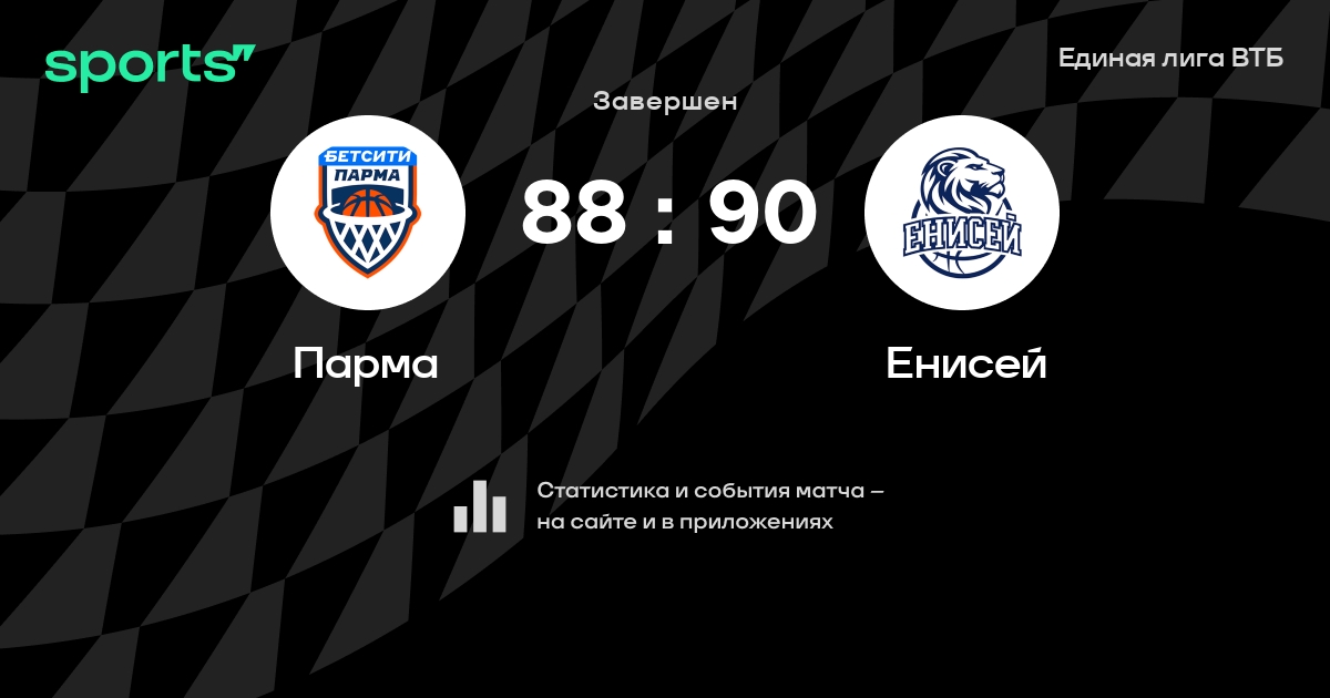 В прошедшем матче в рамках турнира Единая лига ВТБ состоялась встреча команд Парма - Енисей в городе Пермь (Россия) на стадионе УДС Молот (вместимость - 7000)