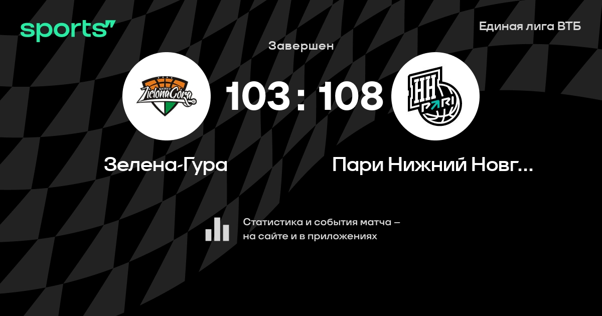 В прошедшем матче в рамках турнира Единая лига ВТБ состоялась встреча команд Зелена-Гура - Пари Нижний Новгород в городе Зелена-Гура (Польша) на стадионе Рекреационно-спортивный центр (вместимость - 6080)