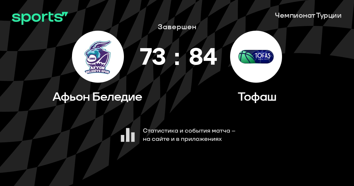 В прошедшем матче в рамках турнира Чемпионат Турции состоялась встреча команд Афьон Беледие - Тофаш в городе Afyonkarahisar на стадионе Prof. Dr. Veysel Eroğlu Spor Salonu