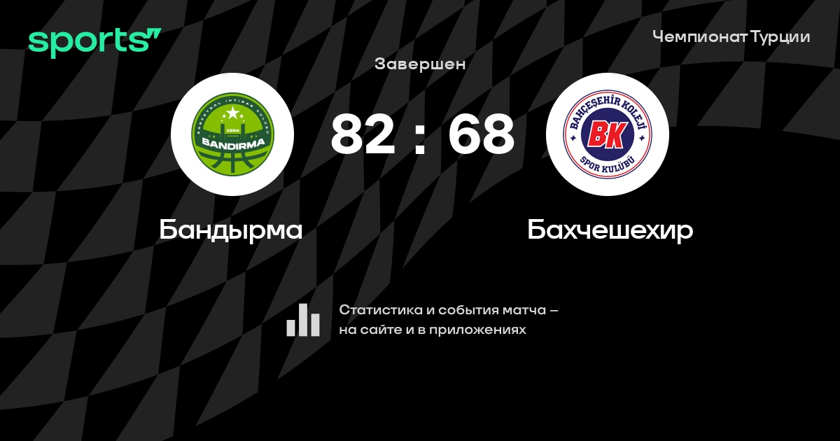 В прошедшем матче в рамках турнира Чемпионат Турции состоялась встреча команд Бандырма - Бахчешехир в городе Balikesir на стадионе Kara Ali Acar Spor Salonu