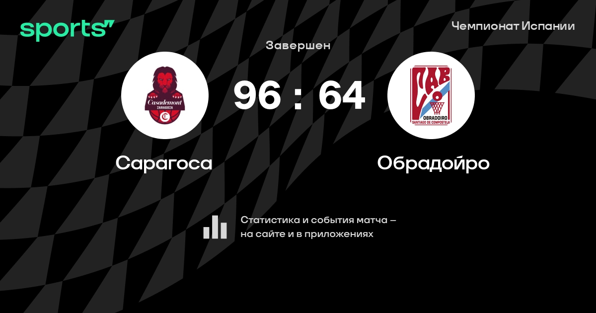 В прошедшем матче в рамках турнира Чемпионат Испании состоялась встреча команд Сарагоса - Обрадойро в городе Zaragoza на стадионе Príncipe Felipe Arena