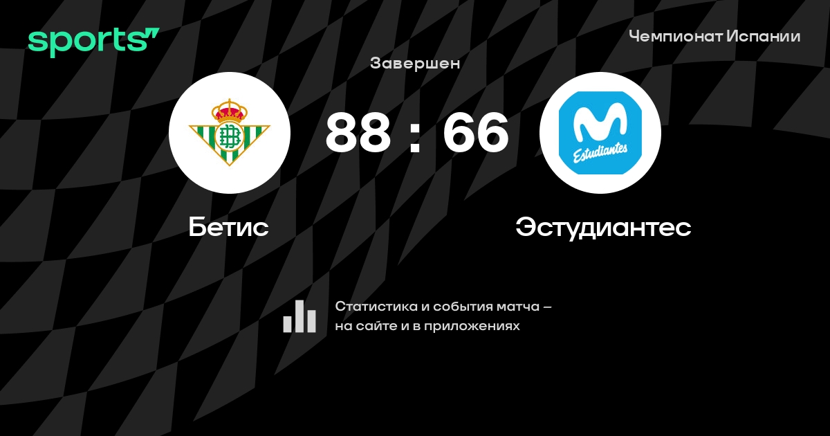 В прошедшем матче в рамках турнира Чемпионат Испании состоялась встреча команд Бетис - Эстудиантес в городе Гранада (Испания) на стадионе Паласио Мунисипаль де Депортес (вместимость - 7358)
