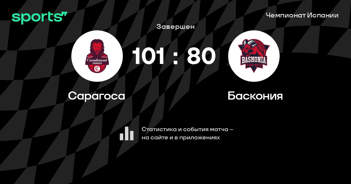 В прошедшем матче в рамках турнира Чемпионат Испании состоялась встреча команд Сарагоса - Баскония в городе Zaragoza на стадионе Príncipe Felipe Arena