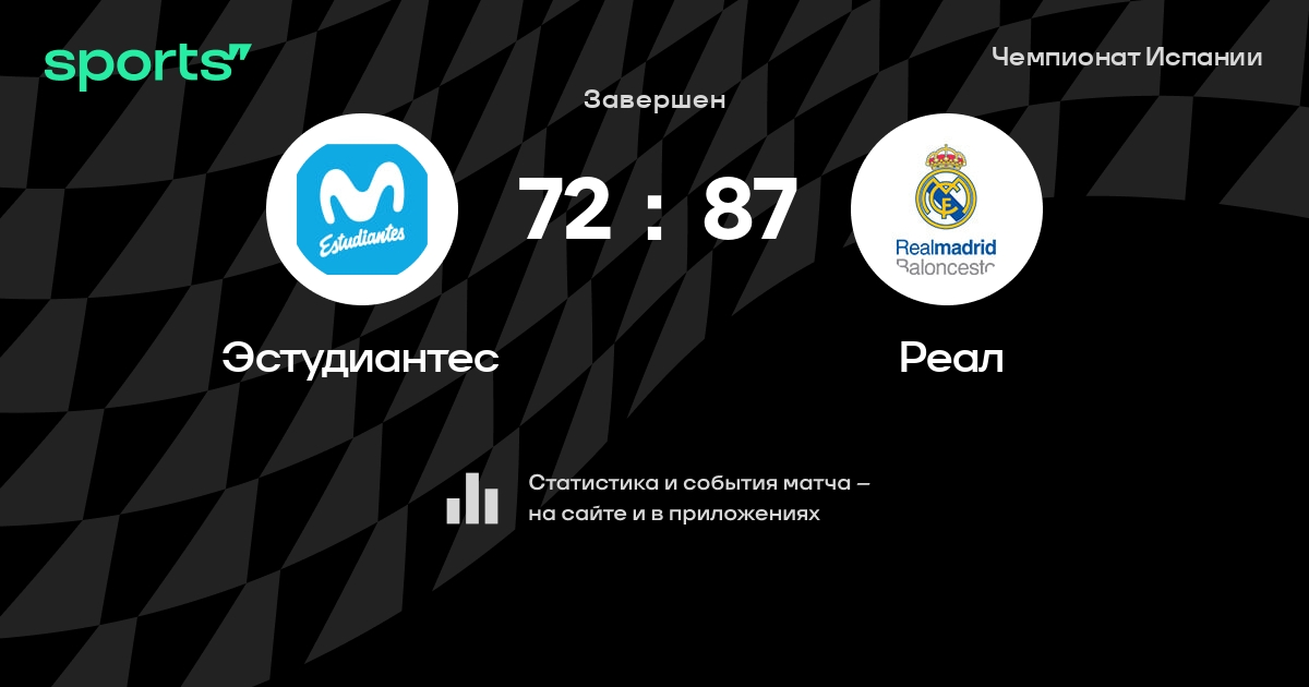 В прошедшем матче в рамках турнира Чемпионат Испании состоялась встреча команд Эстудиантес - Реал в городе Мадрид (Испания) на стадионе Мовистар Арена (вместимость - 15000)
