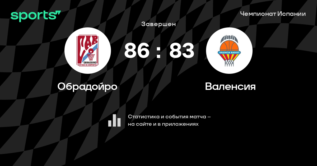 В прошедшем матче в рамках турнира Чемпионат Испании состоялась встреча команд Обрадойро - Валенсия в городе Santiago de Compostela на стадионе Pabellón Multiusos Fontes do Sar