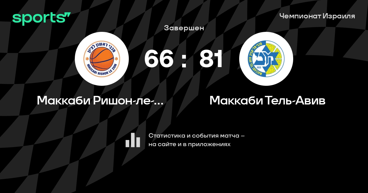 В прошедшем матче в рамках турнира Чемпионат Израиля состоялась встреча команд Маккаби Ришон-ле-Цион - Маккаби Тель-Авив в городе Rishon Le Zion на стадионе Beit Maccabi