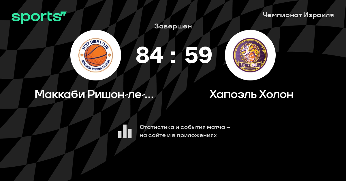 В прошедшем матче в рамках турнира Чемпионат Израиля состоялась встреча команд Маккаби Ришон-ле-Цион - Хапоэль Холон в городе Rishon Le Zion на стадионе Beit Maccabi