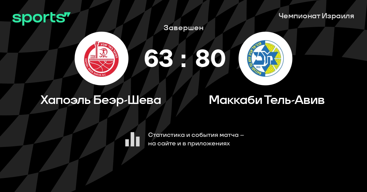 В прошедшем матче в рамках турнира Чемпионат Израиля состоялась встреча команд Хапоэль Беэр-Шева - Маккаби Тель-Авив в городе Be'er Sheva на стадионе Conch Arena