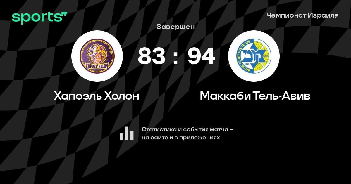В прошедшем матче в рамках турнира Чемпионат Израиля состоялась встреча команд Хапоэль Холон - Маккаби Тель-Авив в городе на стадионе Holon Toto Hall