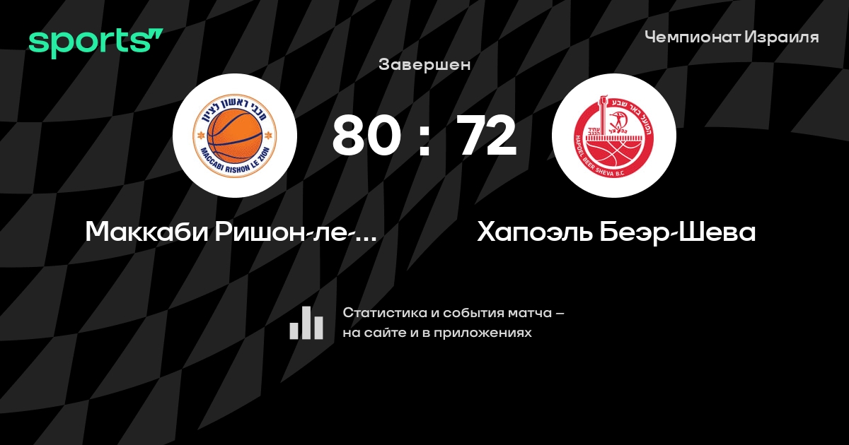 В прошедшем матче в рамках турнира Чемпионат Израиля состоялась встреча команд Маккаби Ришон-ле-Цион - Хапоэль Беэр-Шева в городе Rishon Le Zion на стадионе Beit Maccabi
