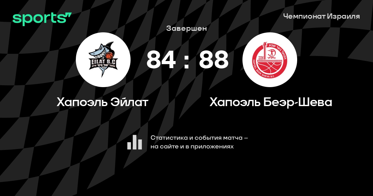 В прошедшем матче в рамках турнира Чемпионат Израиля состоялась встреча команд Хапоэль Эйлат - Хапоэль Беэр-Шева в городе Eilat на стадионе Begin Sport Hall