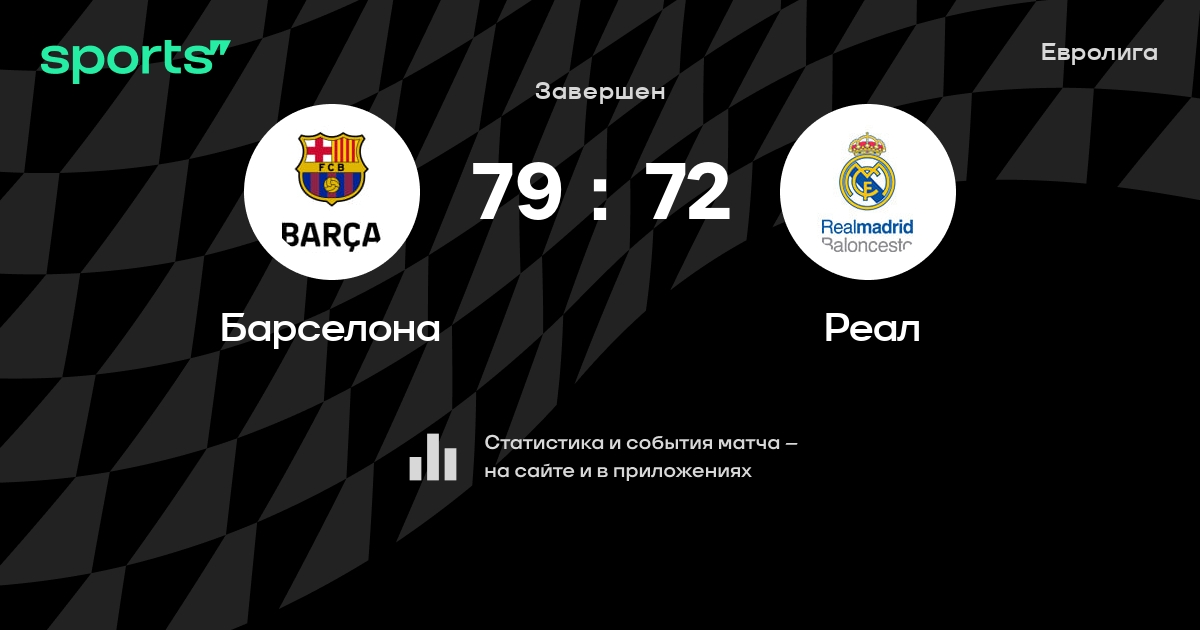 В прошедшем матче в рамках турнира Евролига состоялась встреча команд Барселона - Реал в городе Барселона (Испания) на стадионе Палау Блауграна (вместимость - 7585)