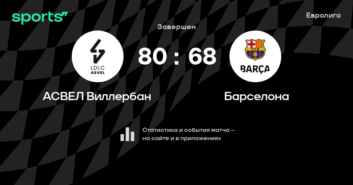 В прошедшем матче в рамках турнира Евролига состоялась встреча команд АСВЕЛ Виллербан - Барселона в городе Виллербанн (Франция) на стадионе Астробаль (вместимость - 5556)