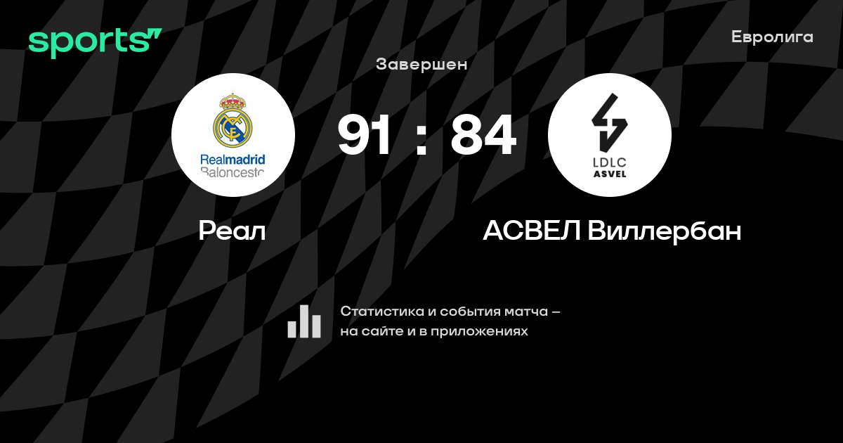 В прошедшем матче в рамках турнира Евролига состоялась встреча команд Реал - АСВЕЛ Виллербан в городе Мадрид (Испания) на стадионе Мовистар Арена (вместимость - 15000)