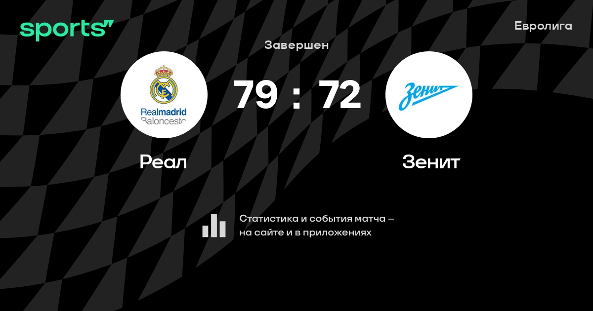 В прошедшем матче в рамках турнира Евролига состоялась встреча команд Реал - Зенит в городе Мадрид (Испания) на стадионе Мовистар Арена (вместимость - 15000)