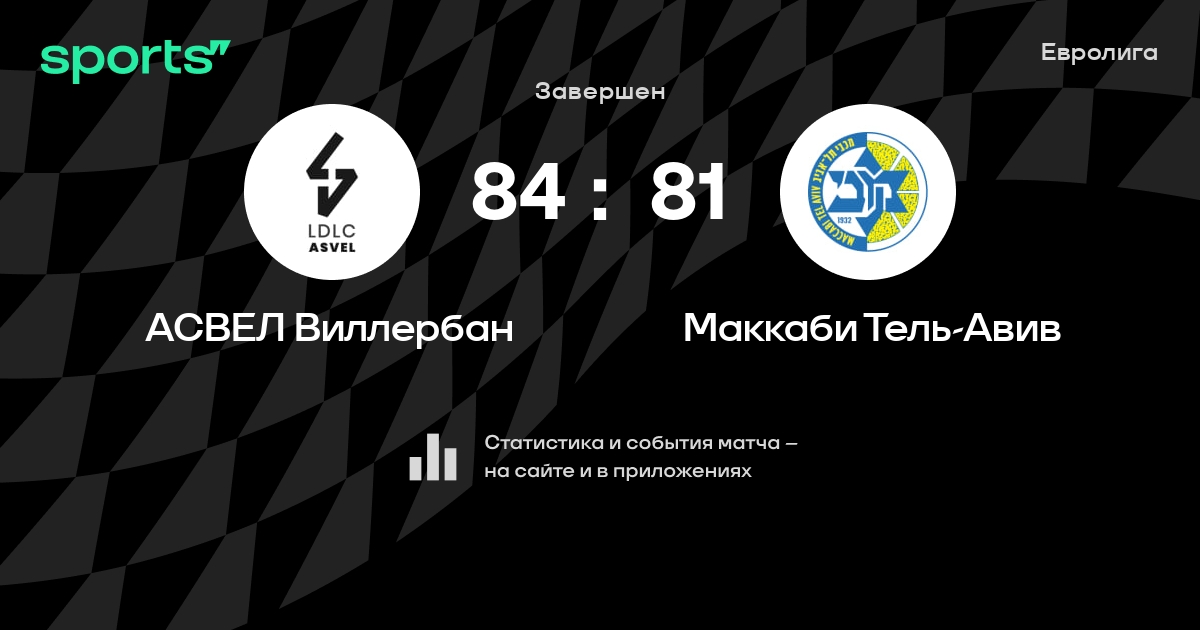 В прошедшем матче в рамках турнира Евролига состоялась встреча команд АСВЕЛ Виллербан - Маккаби Тель-Авив в городе Виллербанн (Франция) на стадионе Астробаль (вместимость - 5556)