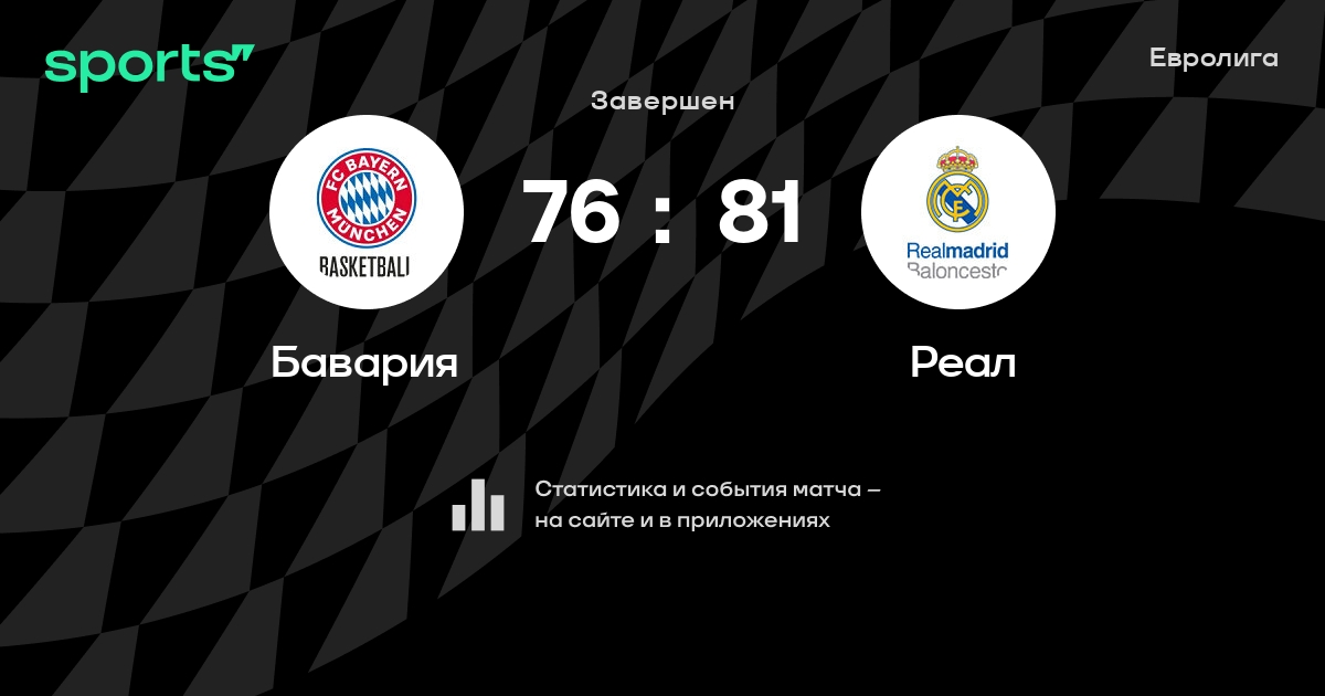 В прошедшем матче в рамках турнира Евролига состоялась встреча команд Бавария - Реал в городе Мюнхен (Германия) на стадионе BMW Парк (вместимость - 6700)