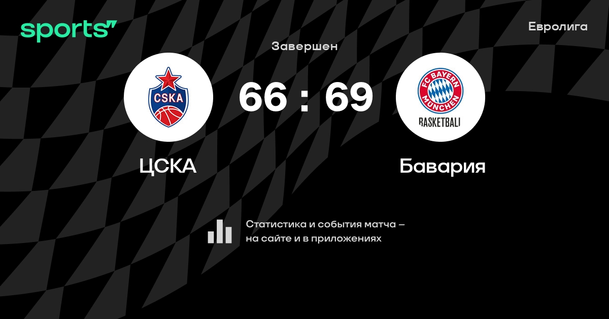 В прошедшем матче в рамках турнира Евролига состоялась встреча команд ЦСКА - Бавария в городе Москва (Россия) на стадионе Мегаспорт (вместимость - 13126)
