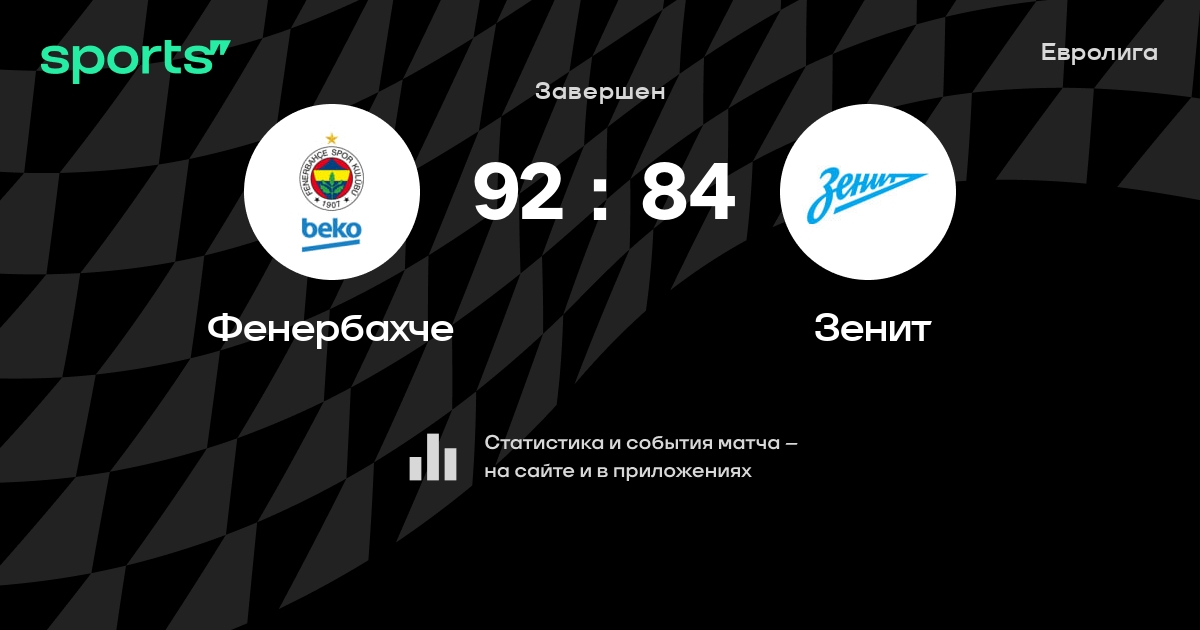 В прошедшем матче в рамках турнира Евролига состоялась встреча команд Фенербахче - Зенит в городе Стамбул (Турция) на стадионе Улкер Спортс Арена (вместимость - 13000)
