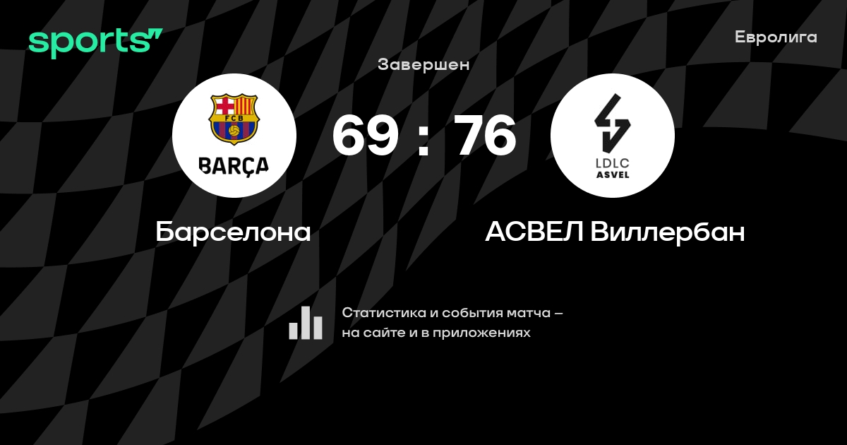 В прошедшем матче в рамках турнира Евролига состоялась встреча команд Барселона - АСВЕЛ Виллербан в городе Барселона (Испания) на стадионе Палау Блауграна (вместимость - 7585)