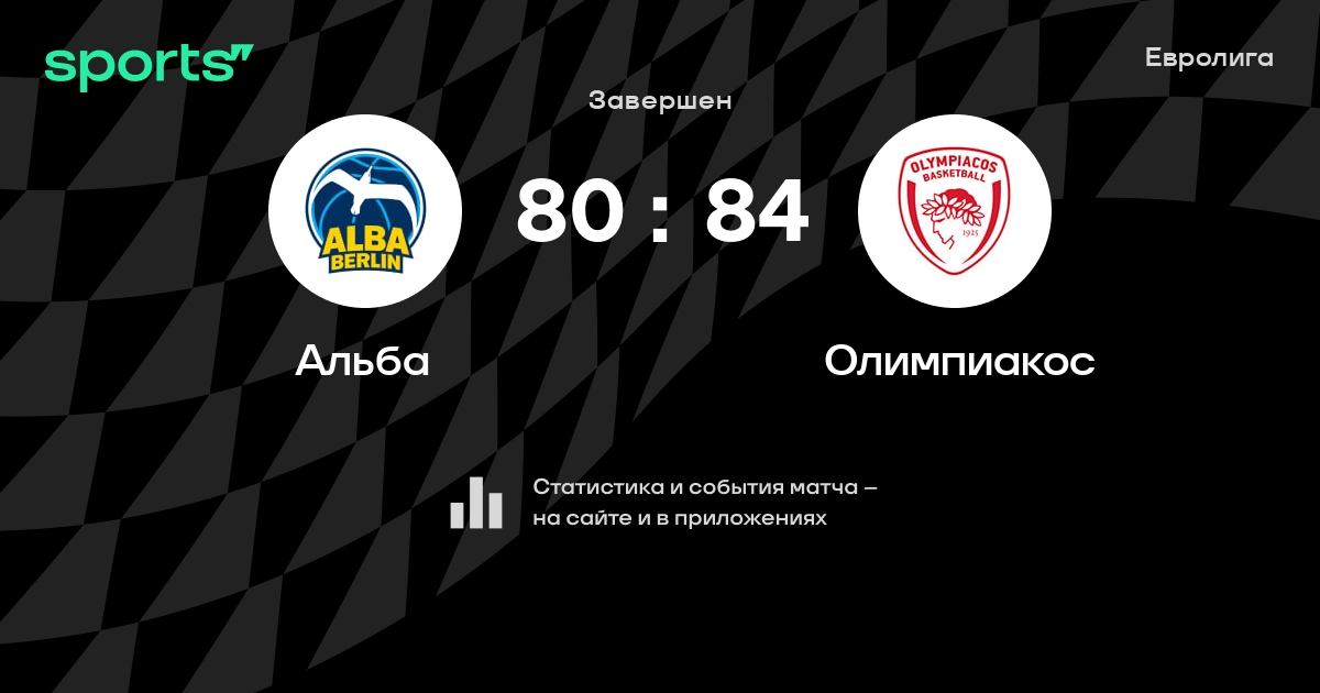 В прошедшем матче в рамках турнира Евролига состоялась встреча команд Альба - Олимпиакос в городе Берлин (Германия) на стадионе Убер Арена (вместимость - 16000)
