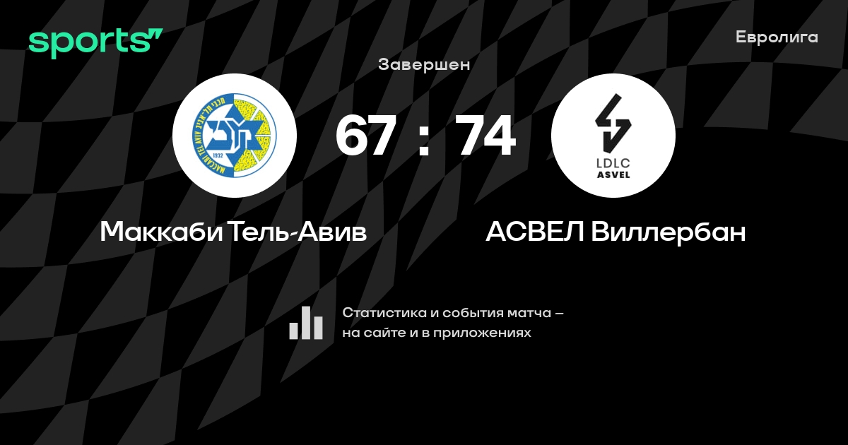 В прошедшем матче в рамках турнира Евролига состоялась встреча команд Маккаби Тель-Авив - АСВЕЛ Виллербан в городе Тель-Авив (Израиль) на стадионе Менора-Мивтахим Арена (вместимость - 11700)