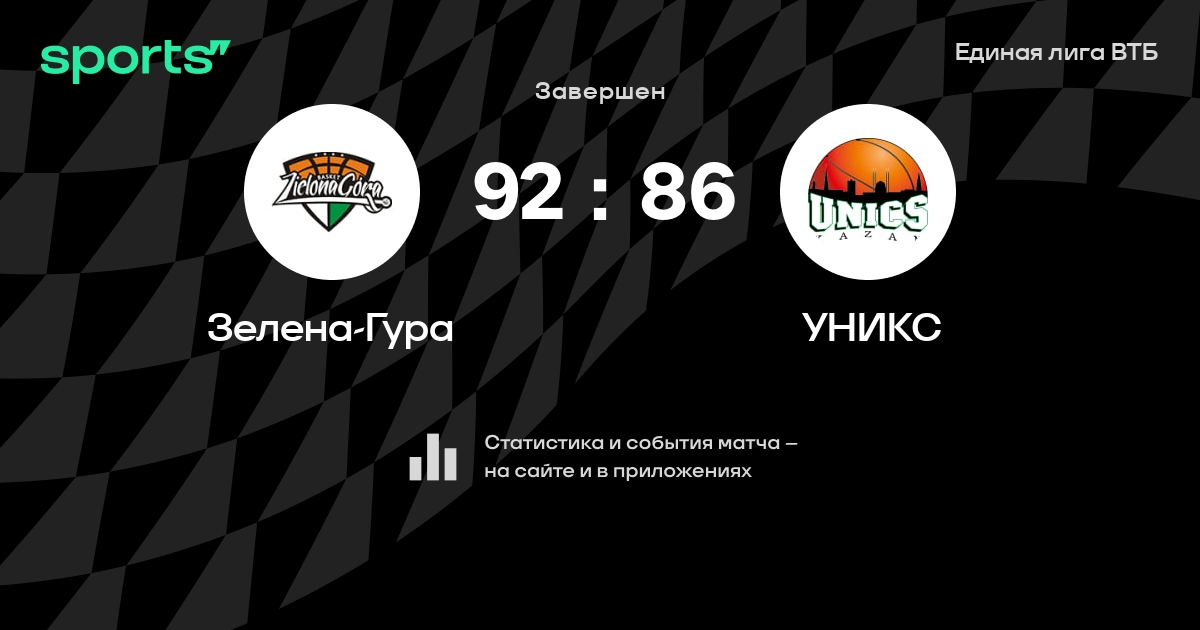 В прошедшем матче в рамках турнира Единая лига ВТБ состоялась встреча команд Зелена-Гура - УНИКС в городе Зелена-Гура (Польша) на стадионе Рекреационно-спортивный центр (вместимость - 6080)