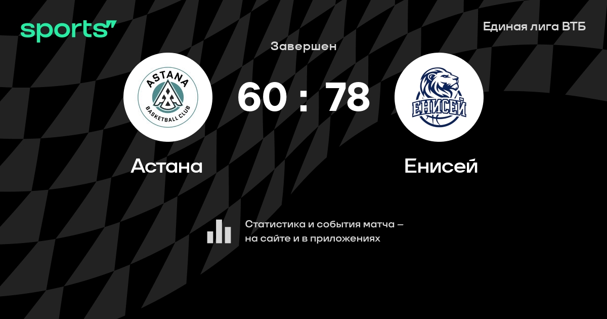 В прошедшем матче в рамках турнира Единая лига ВТБ состоялась встреча команд Астана - Енисей в городе Нур-Султан (Казахстан) на стадионе Велотрек Сарыарка (вместимость - 8000)