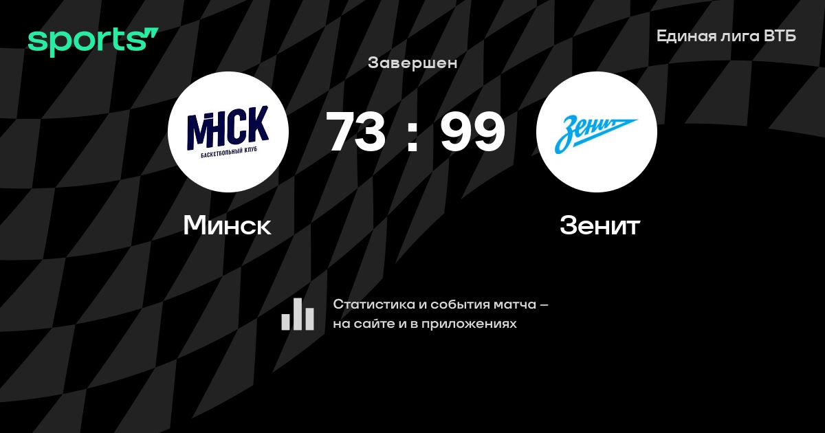 В прошедшем матче в рамках турнира Единая лига ВТБ состоялась встреча команд Минск - Зенит в городе Минск (Беларусь) на стадионе Минск-Арена (вместимость - 15086)