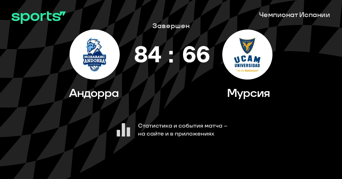В прошедшем матче в рамках турнира Чемпионат Испании состоялась встреча команд Андорра - Мурсия в городе Андорра-ла-Велья (Андорра) на стадионе Полиэспортиу де Андорра (вместимость - 5000)