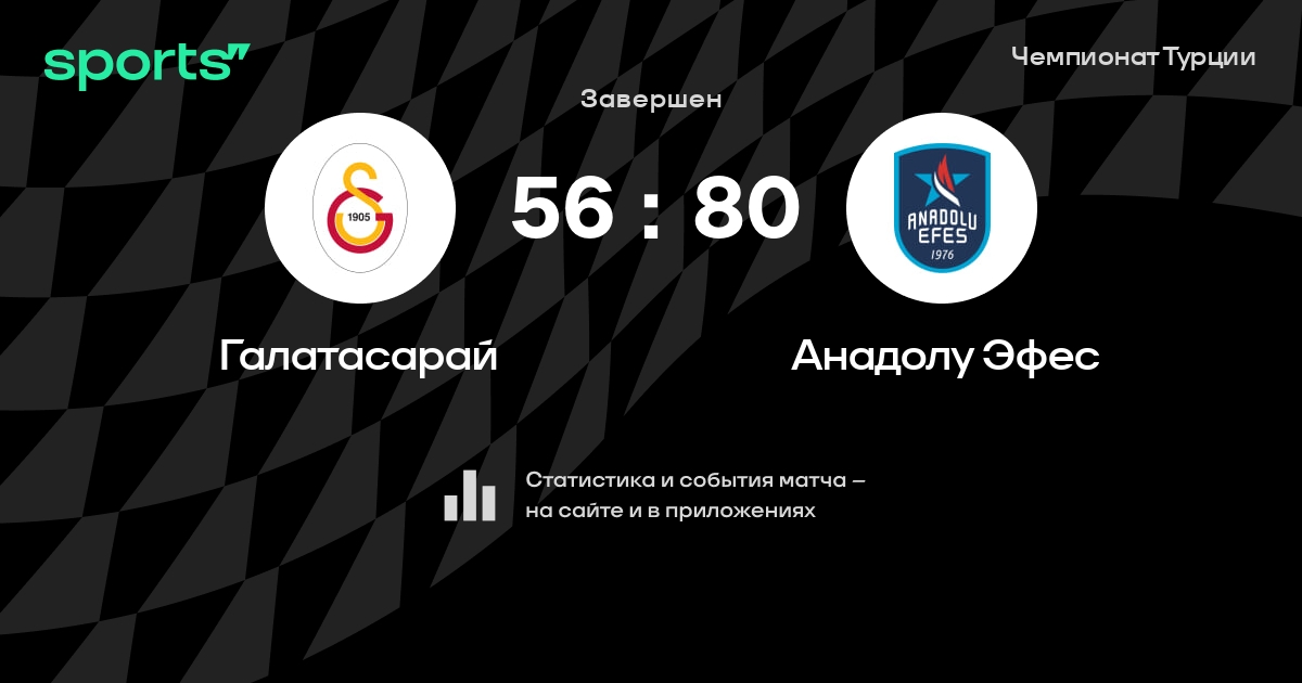 В прошедшем матче в рамках турнира Чемпионат Турции состоялась встреча команд Галатасарай - Анадолу Эфес в городе Стамбул (Турция) на стадионе Синан Эрдем Доум (вместимость - 16000)