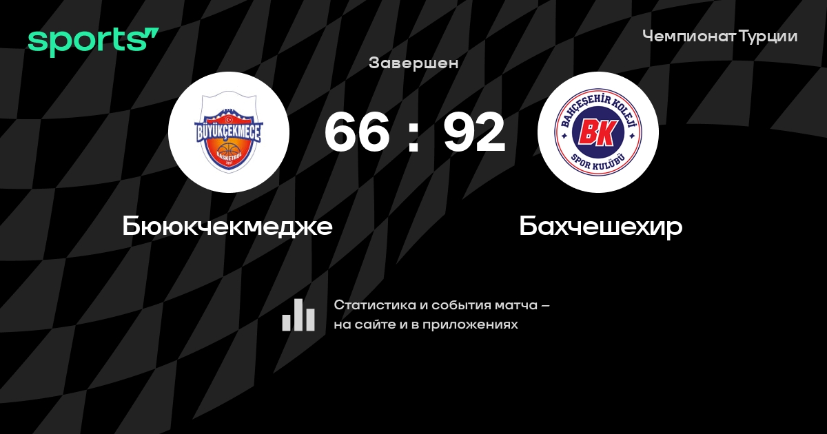 В прошедшем матче в рамках турнира Чемпионат Турции состоялась встреча команд Бююкчекмедже - Бахчешехир в городе на стадионе Gazanfer Bilge Spor Salonu
