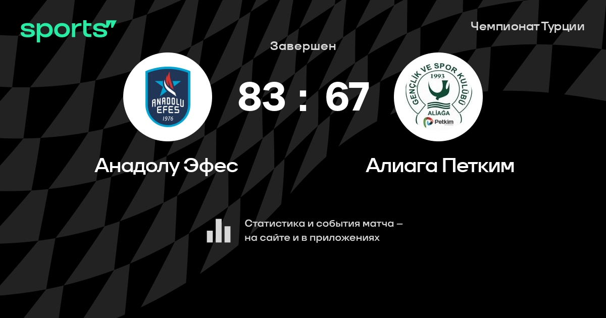 В прошедшем матче в рамках турнира Чемпионат Турции состоялась встреча команд Анадолу Эфес - Алиага Петким в городе Istanbul на стадионе Dar???afaka Ayhan ?ahenk S.S.