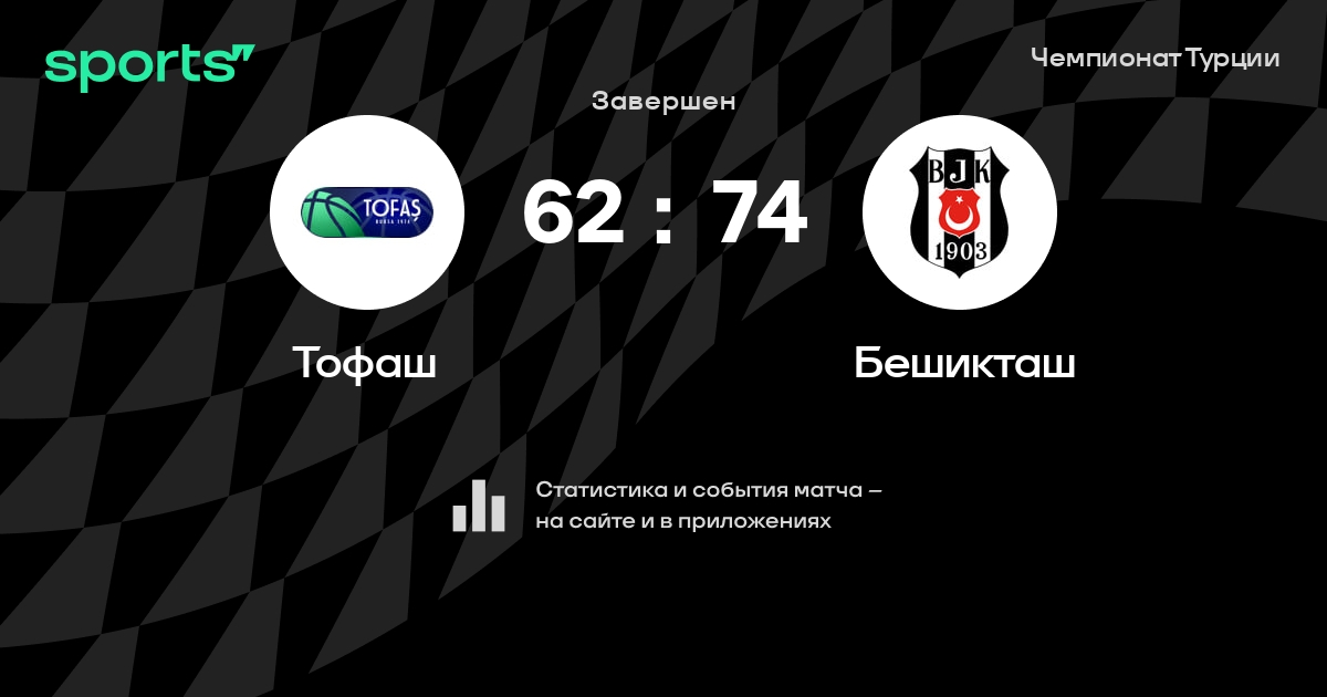 В прошедшем матче в рамках турнира Чемпионат Турции состоялась встреча команд Тофаш - Бешикташ в городе Altiparmak, Bursa на стадионе Bursa Atat?rk Sport Hall