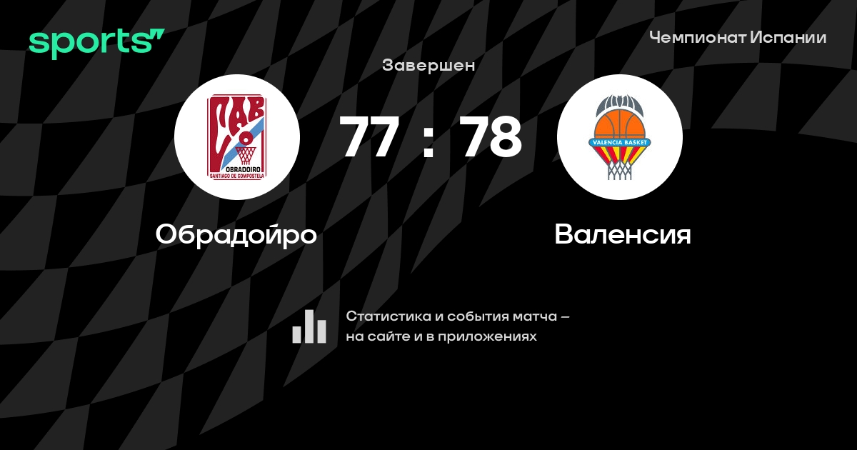 В прошедшем матче в рамках турнира Чемпионат Испании состоялась встреча команд Обрадойро - Валенсия в городе Santiago de Compostela на стадионе Pabellón Multiusos Fontes do Sar
