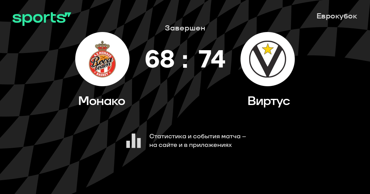 В прошедшем матче в рамках турнира Еврокубок состоялась встреча команд Монако - Виртус в городе Монако (Монако) на стадионе Салле Гастон Медесен (вместимость - 3000)