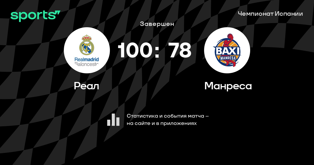 В прошедшем матче в рамках турнира Чемпионат Испании состоялась встреча команд Реал - Манреса в городе Мадрид (Испания) на стадионе Мовистар Арена (вместимость - 15000)