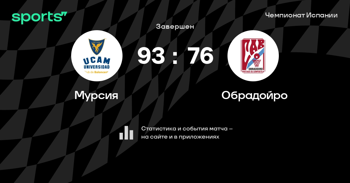 В прошедшем матче в рамках турнира Чемпионат Испании состоялась встреча команд Мурсия - Обрадойро в городе Murcia на стадионе Palacio Municipal De Deportes