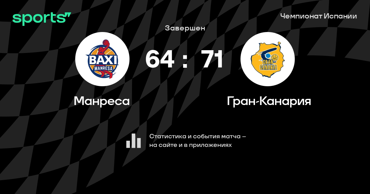 В прошедшем матче в рамках турнира Чемпионат Испании состоялась встреча команд Манреса - Гран-Канария в городе Manresa на стадионе Pavelló Nou Congost