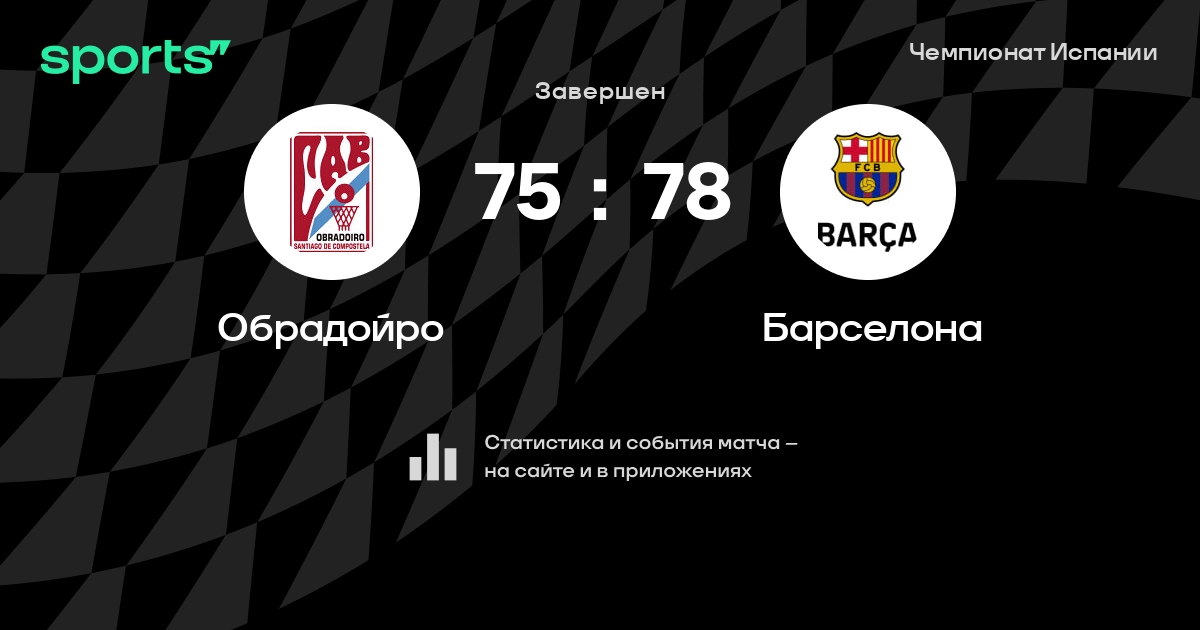 В прошедшем матче в рамках турнира Чемпионат Испании состоялась встреча команд Обрадойро - Барселона в городе Santiago de Compostela на стадионе Pabellón Multiusos Fontes do Sar