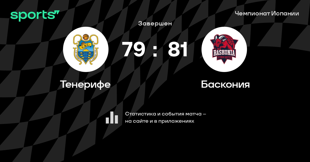 В прошедшем матче в рамках турнира Чемпионат Испании состоялась встреча команд Тенерифе - Баскония в городе Tenerife на стадионе Pabellon Insular Santiago Martin